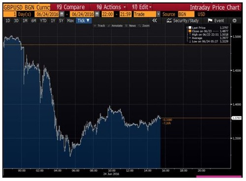 Markets have reacted significantly to the UK’s decision; the pound has fallen dramatically overnight versus the dollar to its lowest since 1985 and traders are fleeing the currency markets in favour of “safe” investments in precious metals, sending stock markets into turmoil.