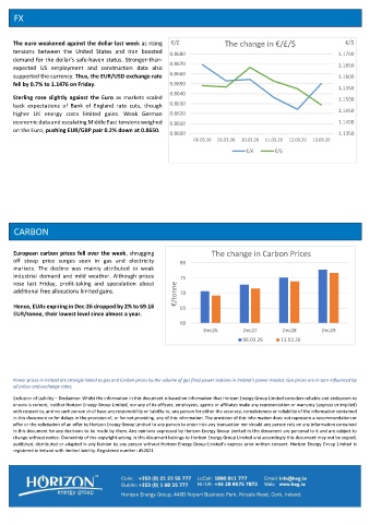 European carbon prices fell over the week, shrugging The change in Carbon Prices