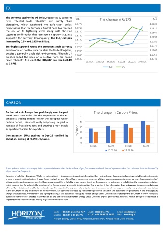Power prices in Ireland are strongly linked to gas and Carbon prices by the volume of gas fired power stations in Ireland’s power market. Gas prices are in turn influenced by