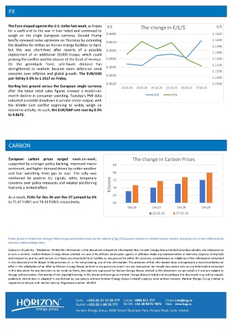 Power prices in Ireland are strongly linked to gas and Carbon prices by the volume of gas fired power stations in Ireland’s power market. Gas prices are in turn influenced by